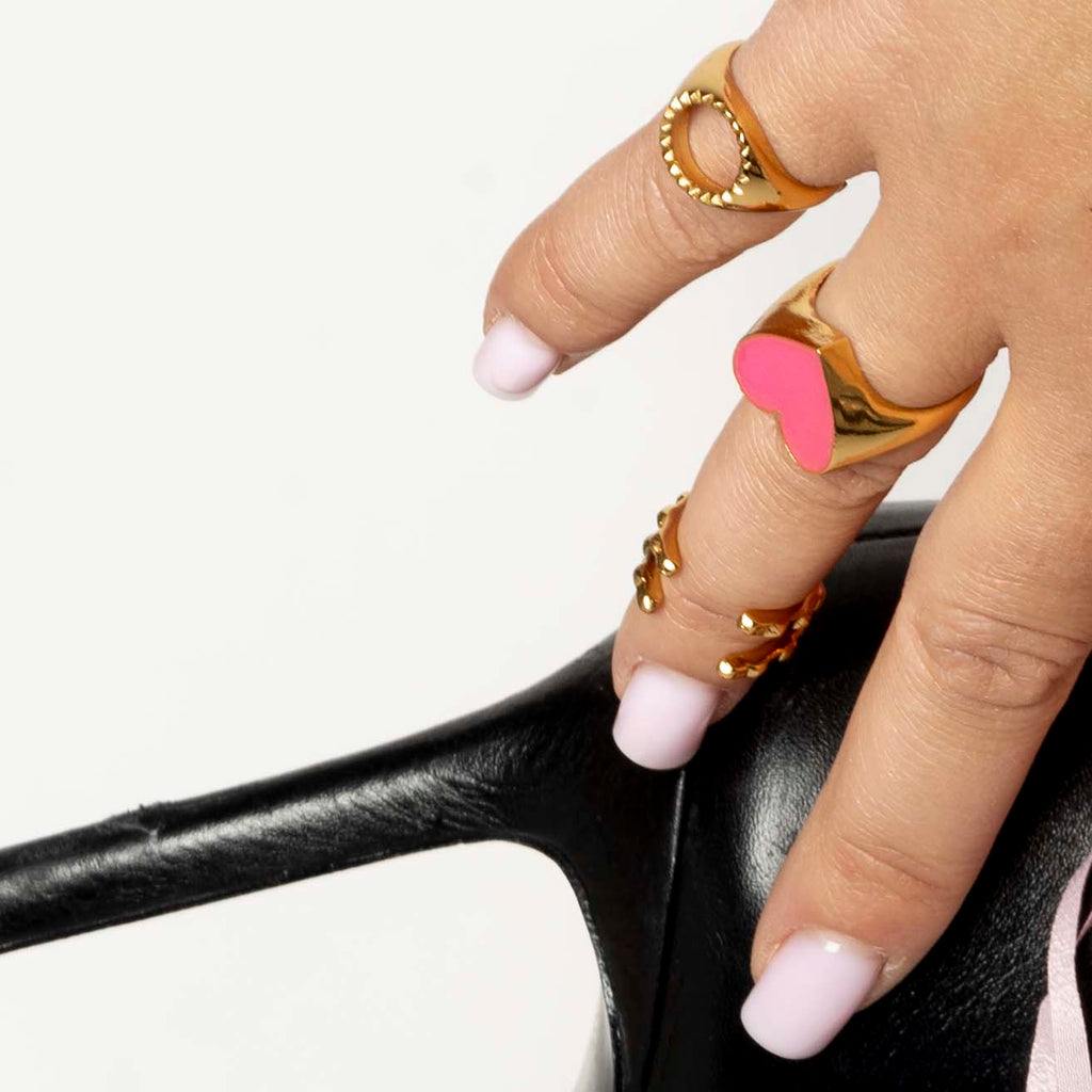 HEART The Classic Signet Ring Gold rg & pk enamel volume L