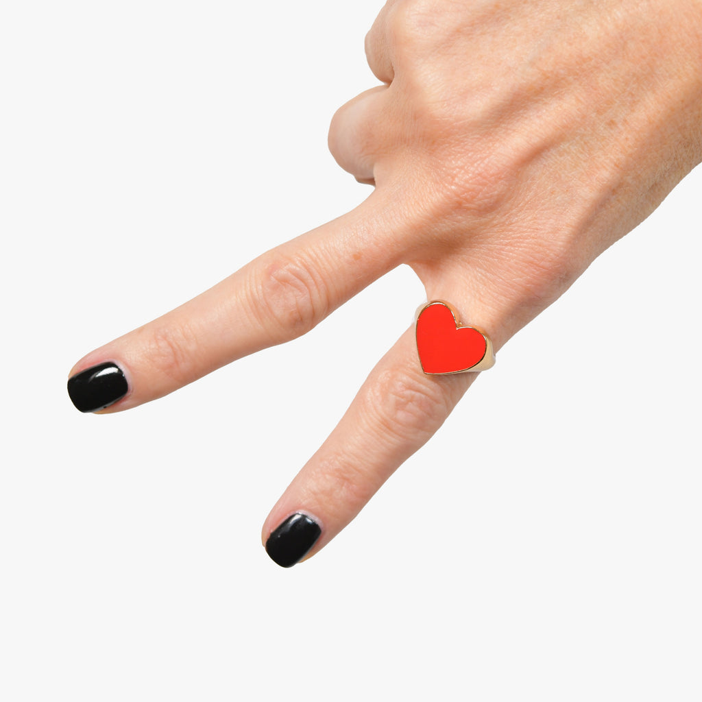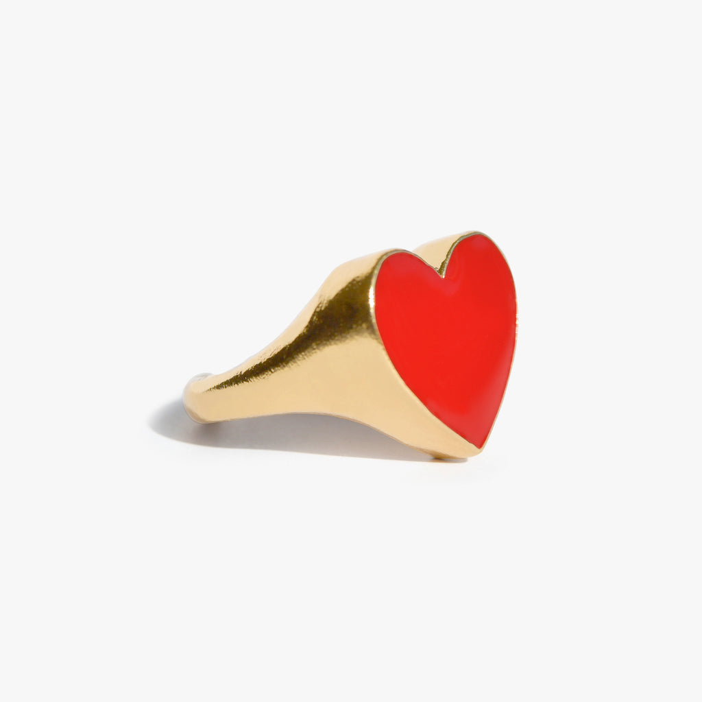 HEART The Classic Signet Ring Gold heart rg & red enamel volume L