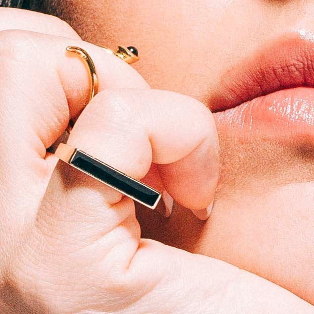 A straight but punctuated ring, a bit like all of us! This golden signet ring has a slight momentum that makes all its difference. "Back to black"... essential in BLACK enamel for its chic, slightly rebellious side.