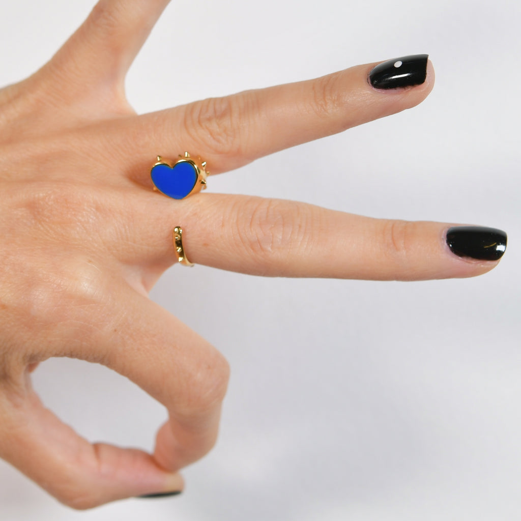 A golden heart ring twisted by mini-spikes to say how much passion can sting!!! The bright Klein blue emphasizes the feminine curves and sharp lines of this "cactus" heart ring. A vibrant contrast for an assertive style!!!
