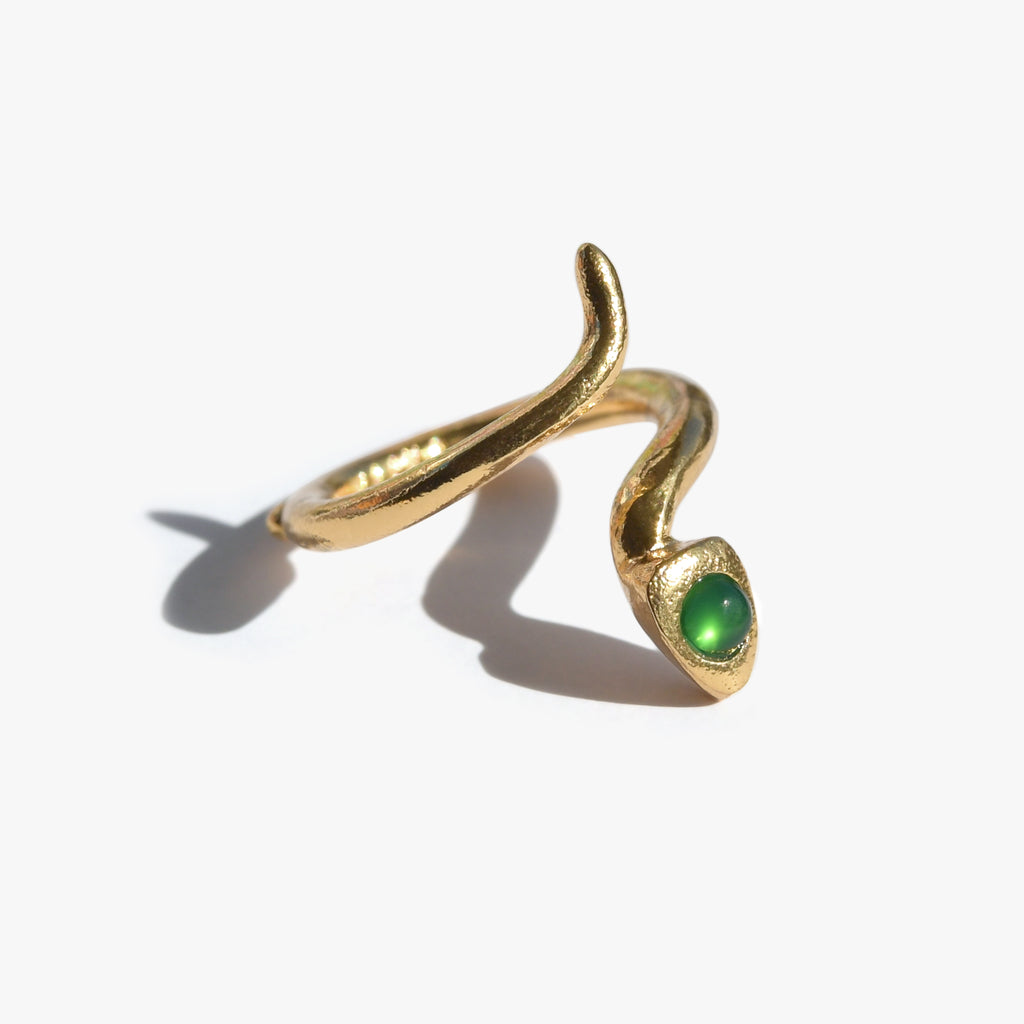 SERPENTER Phalanx Ring Golden snake rg & green agate volume XS