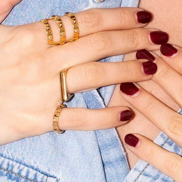- Portés : bague tous doigts, bague phalange, bague superposable