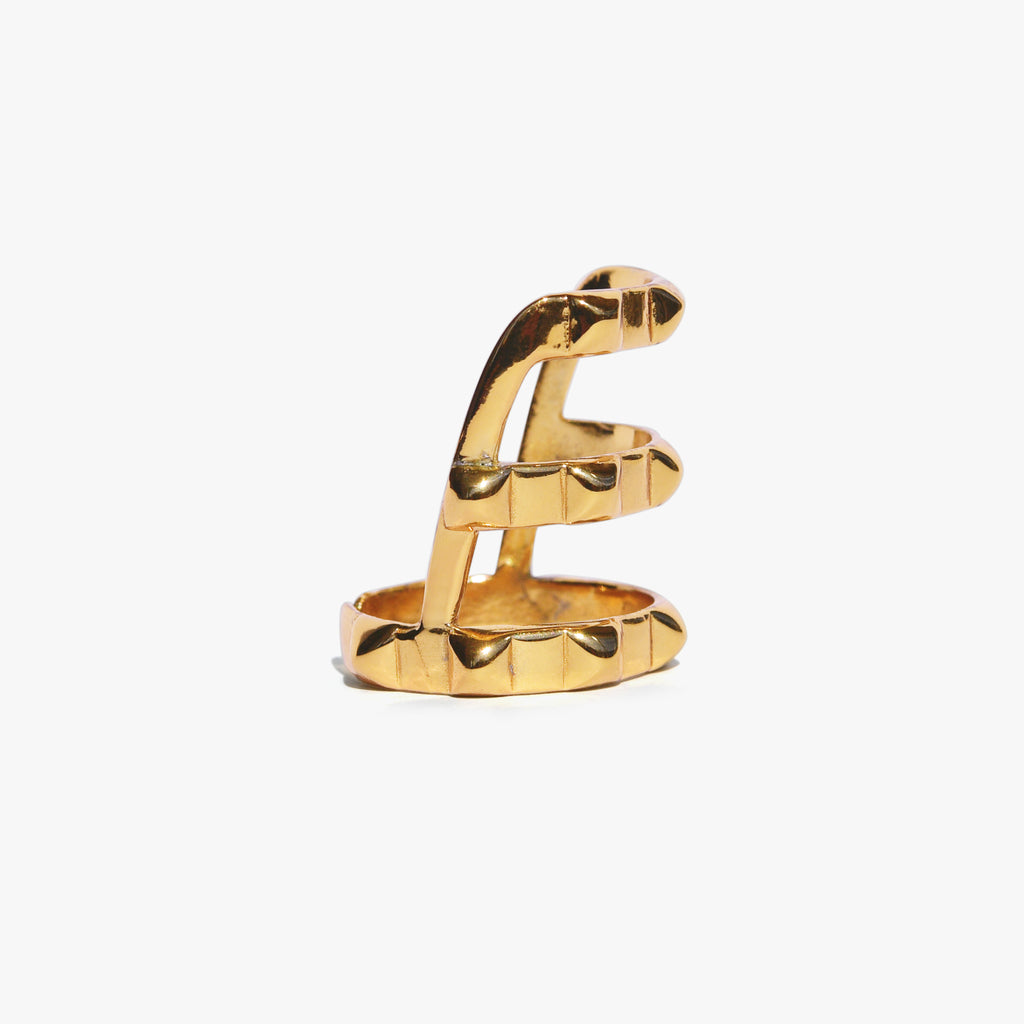 Cette bague Lacet graphique, géométrique, ponctuée de mini studs vient comme un lacet se mettre sur le doigt. Une bague dorée qui réunit en un seul design la forte délicatesse des femmes...Parfaite sur l'index mais se porte à tous les doigts, aux phalanges, quelque soit son look. Un vrai BASIC.