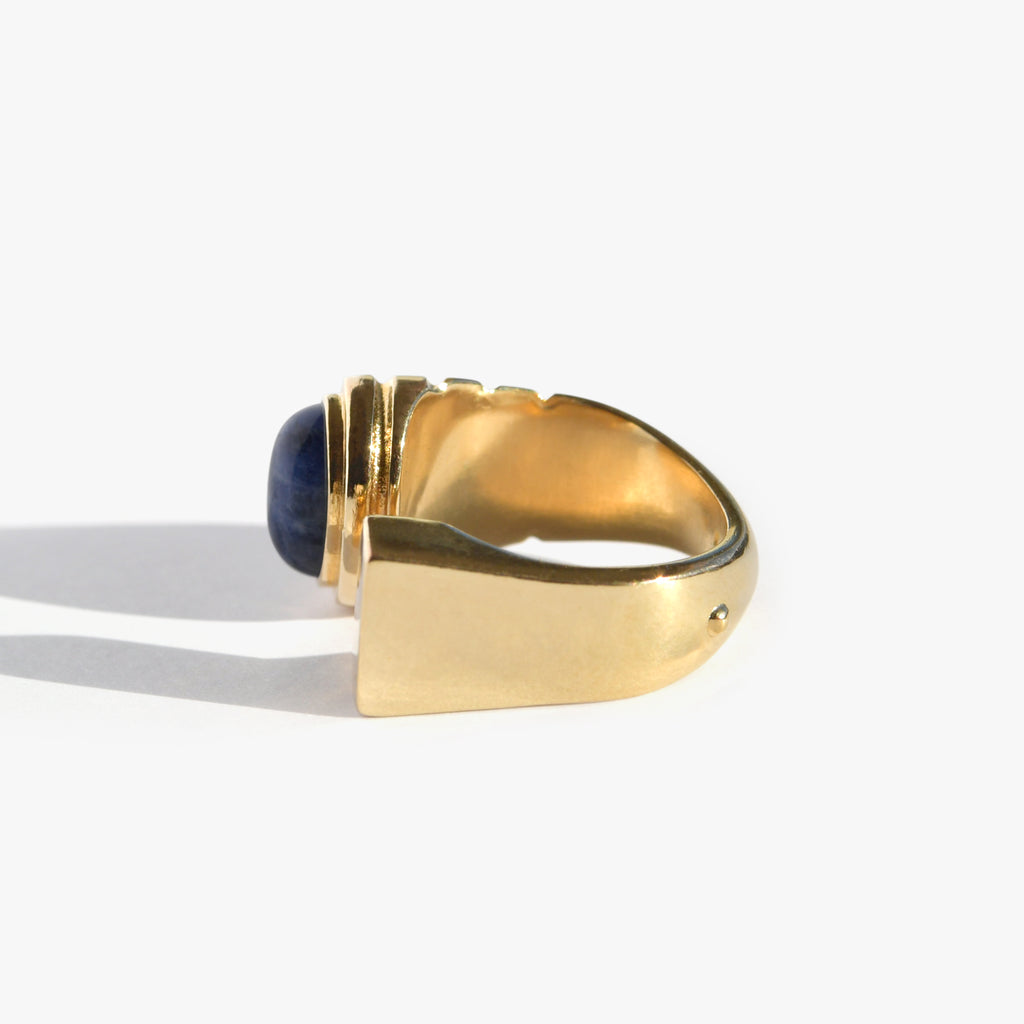 LA N°2 Bague Chevalière Bague dorée ouverte & sodalite volume M