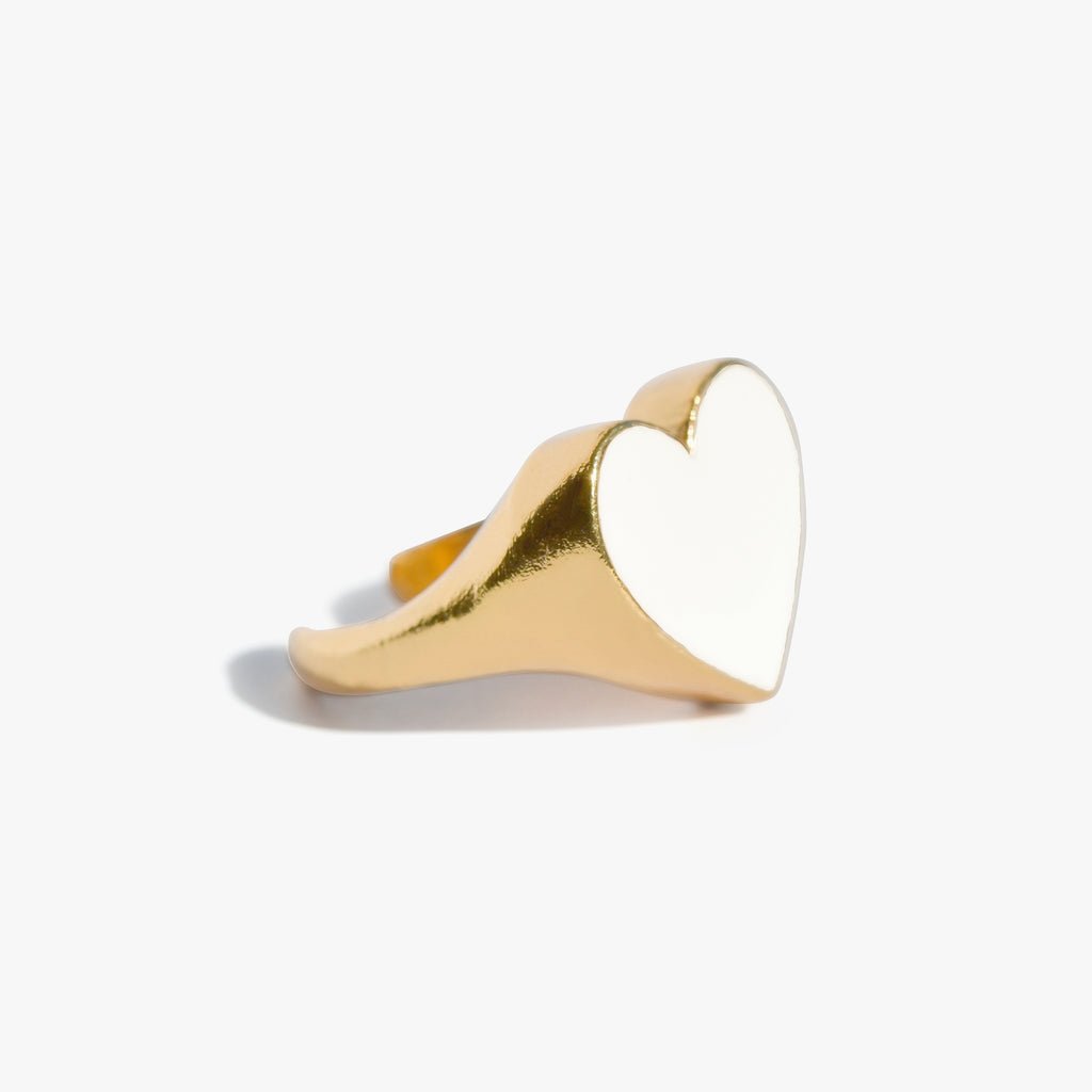 COEUR Le Classique Bague Chevalière Bague dorée & émail blanc volume L