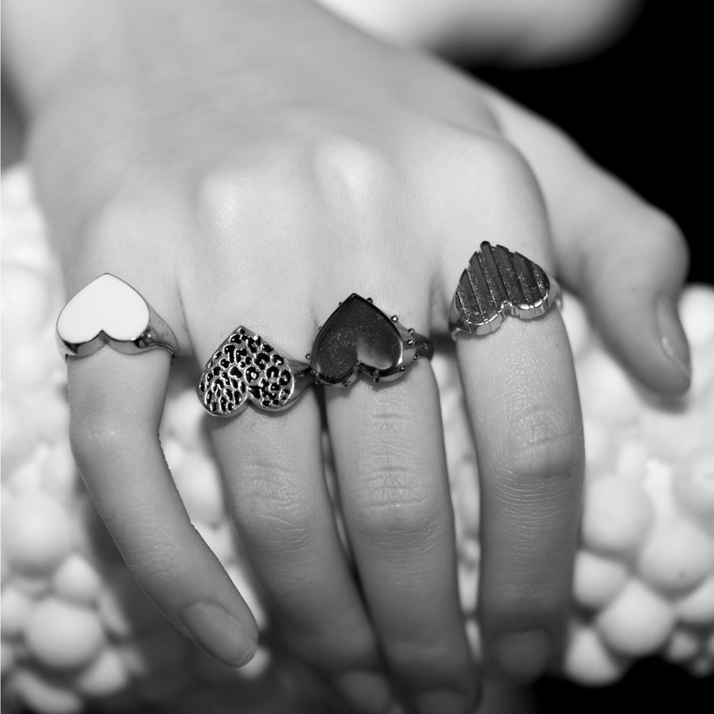 - Bague coeur ajustable déclinée en 5 volumes : Taille XS – S – M – L – XL