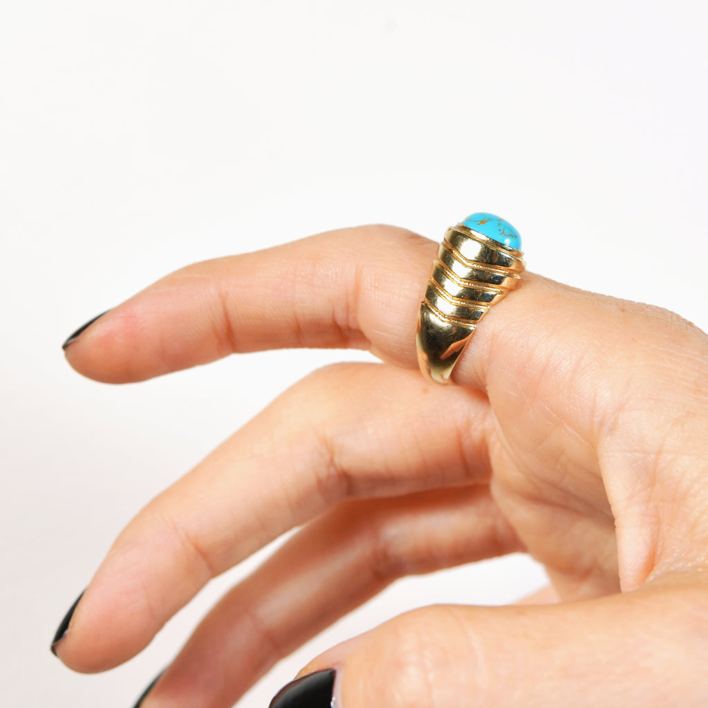 LA N°2 Bague Chevalière Bague dorée & turquoise volume M