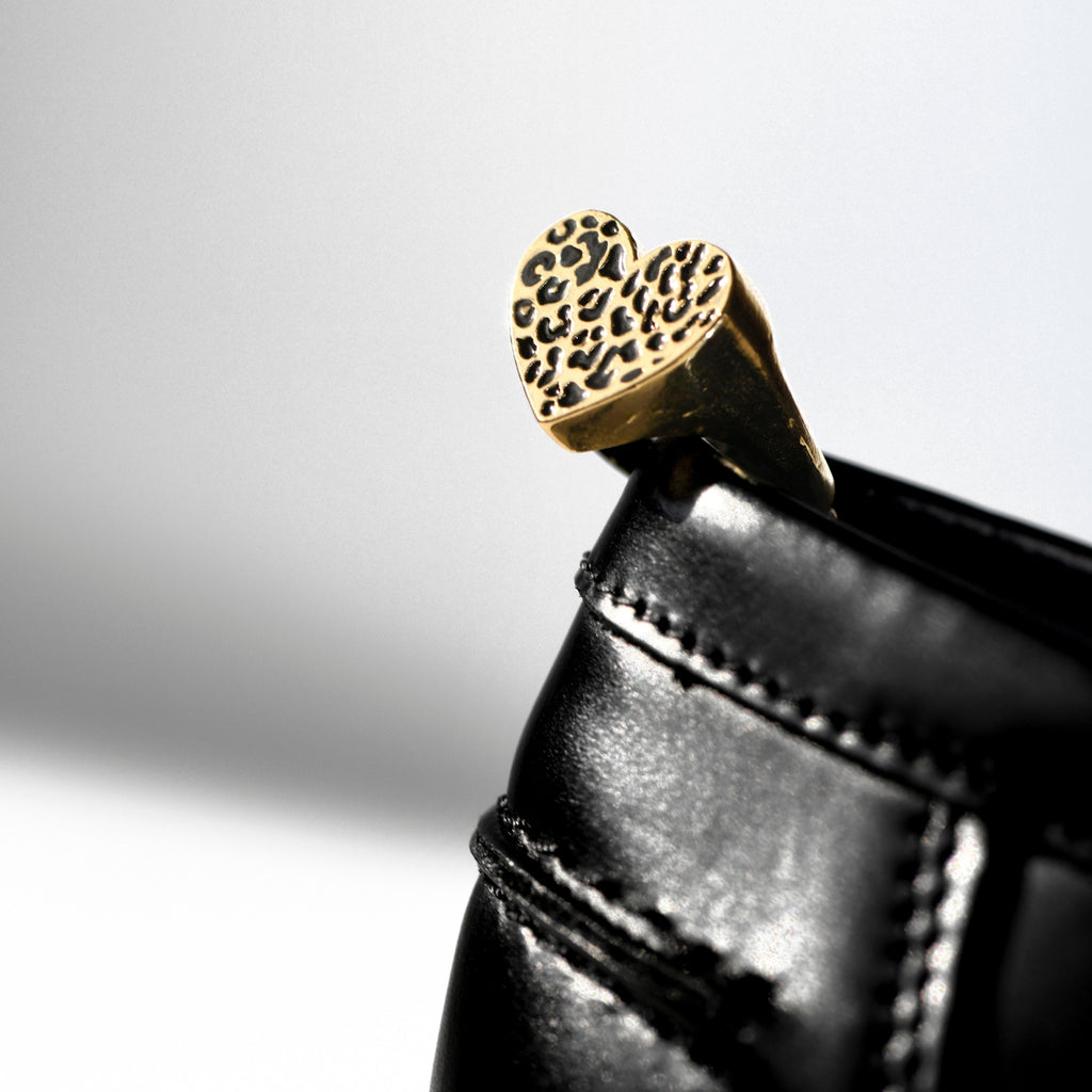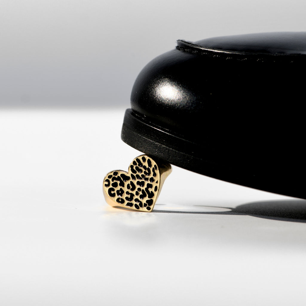 La bague chevalière Coeur Léopard noir dit haut et fort notre côté "animal". Cette bague coeur dorée au design aussi original qu'épuré, est devenue iconique !! LA griffe animale, incontournable, quelque soit notre style.