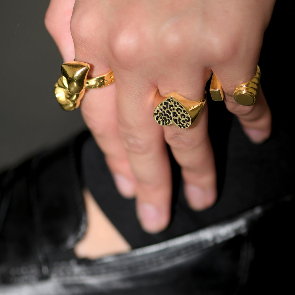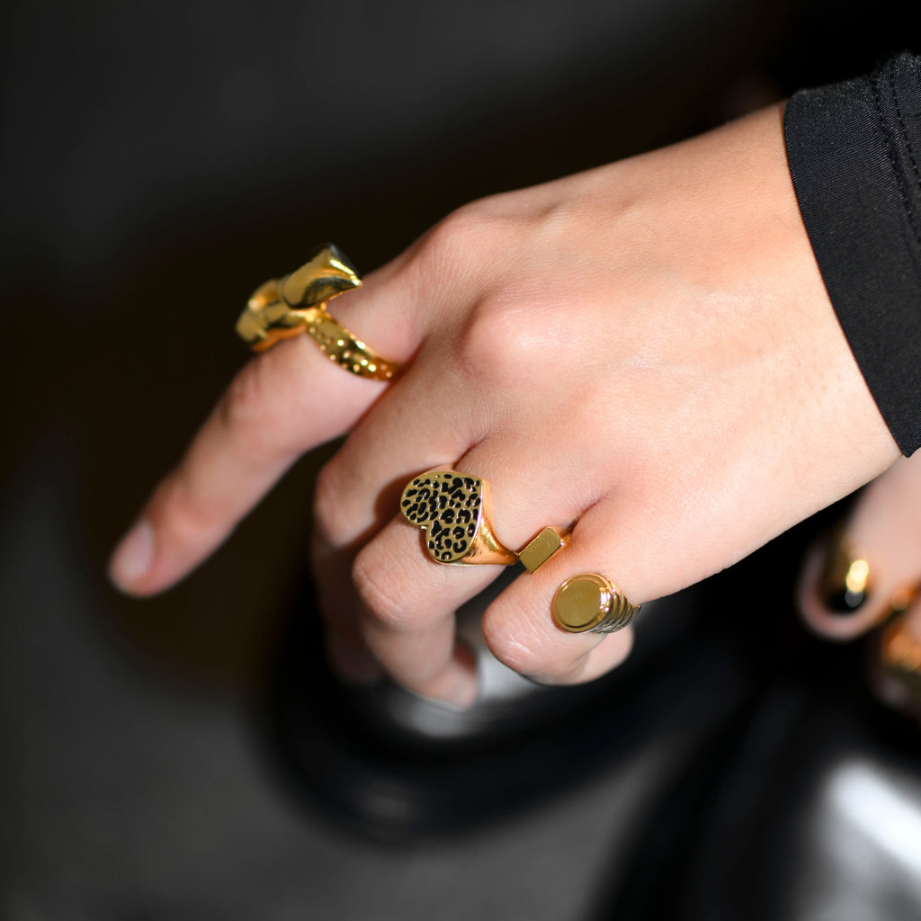 COEUR LEOPARD Bague Chevalière Bague dorée & noire volume L