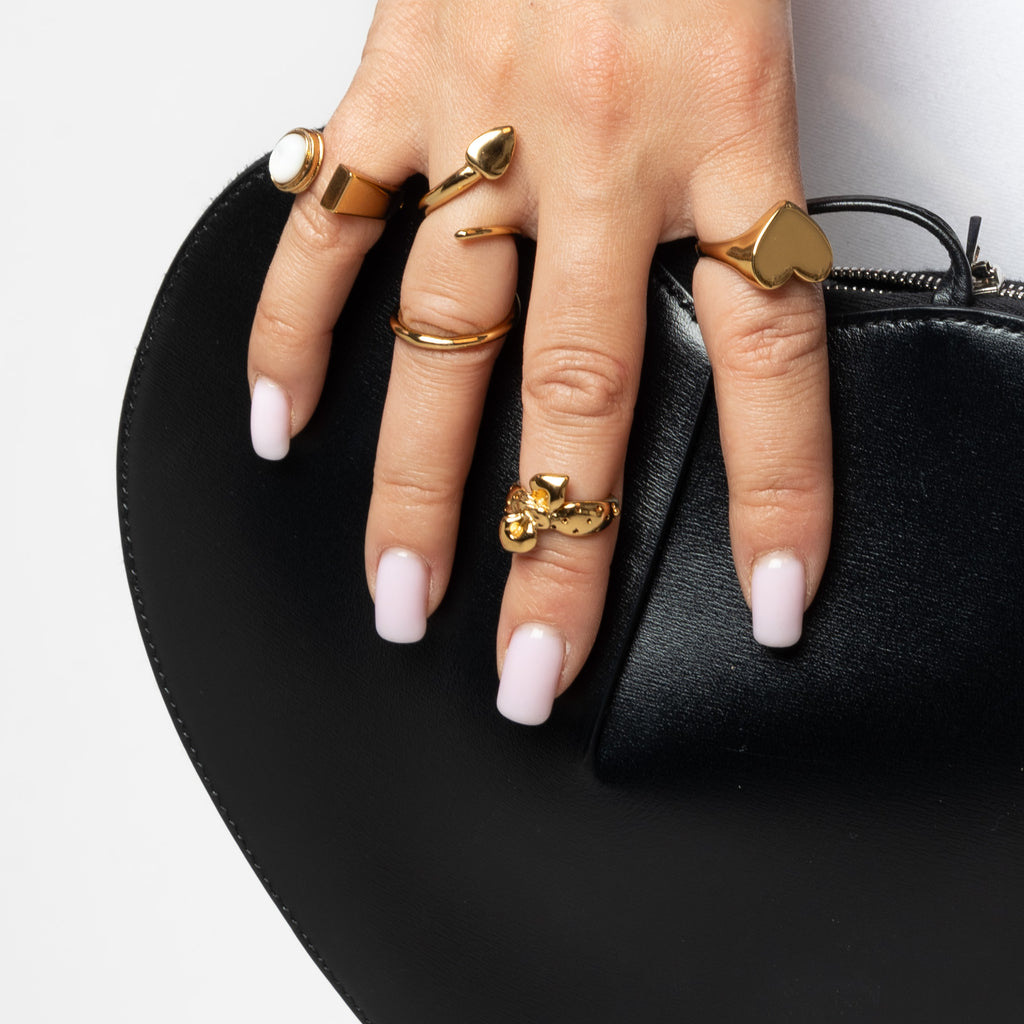 Faites à la main, avec des matériaux naturels, pour préserver leur authenticité et leurs imperfections, chaque bague en laiton doré ERITA est une bague originale et unique.