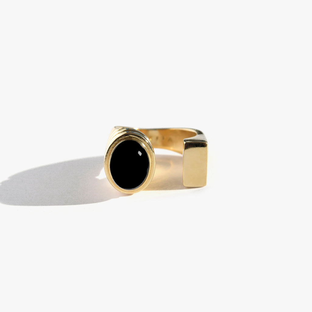 LA N°2 Bague Chevalière Bague dorée ouverte & agate noire volume M