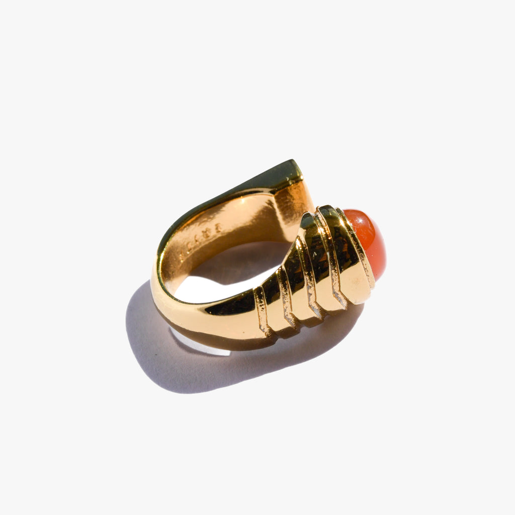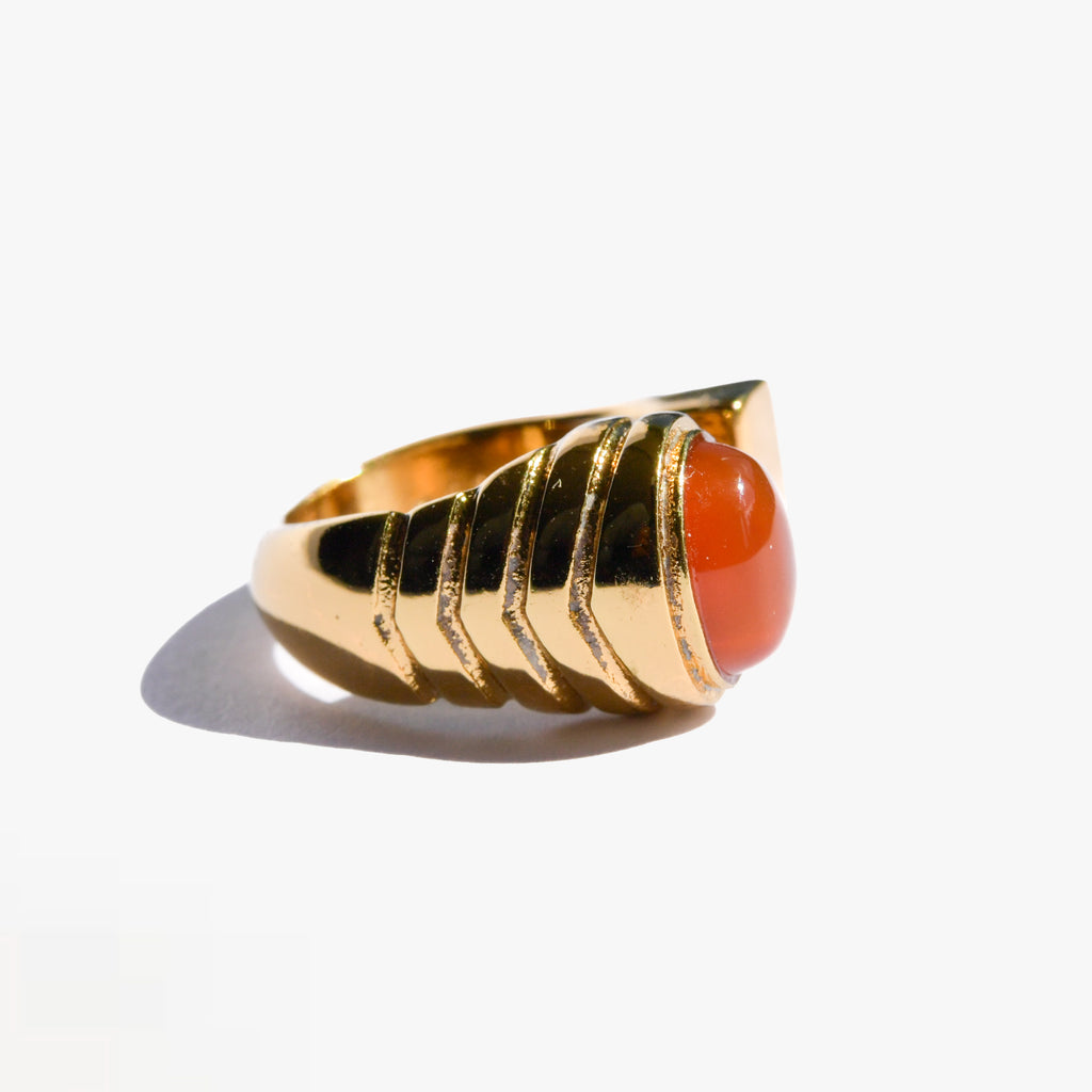 LA N°2 Bague Chevalière Bague dorée ouverte & agate rouge volume M