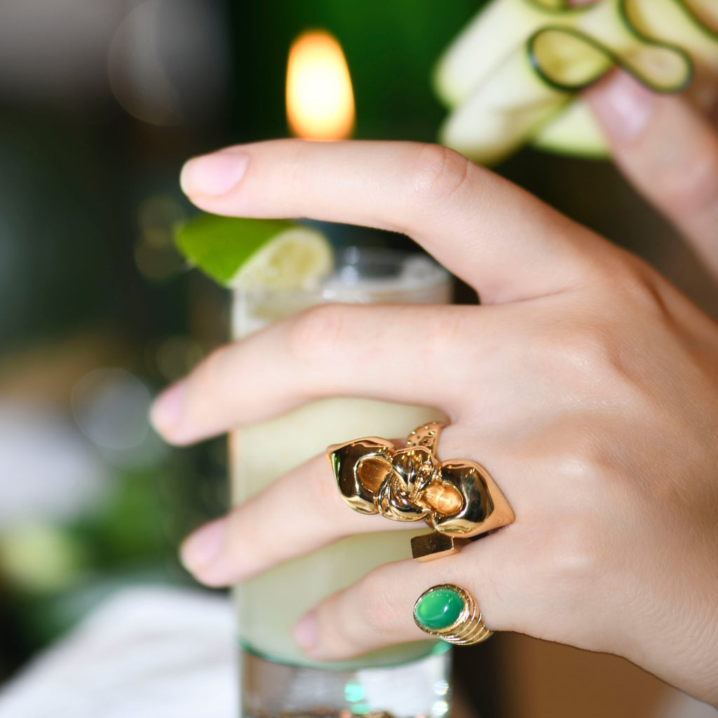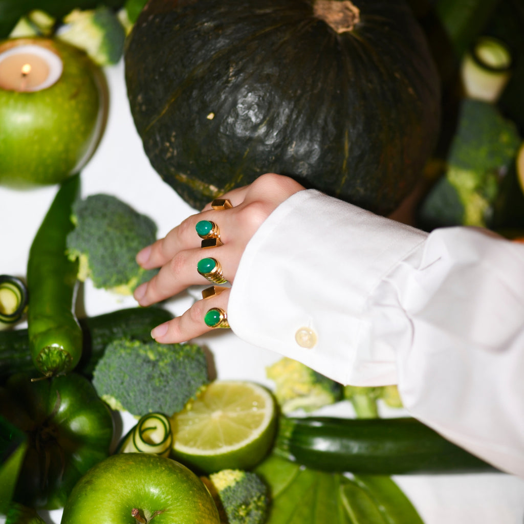LA N°2 Bague Chevalière Bague dorée ouverte & agate verte volume M