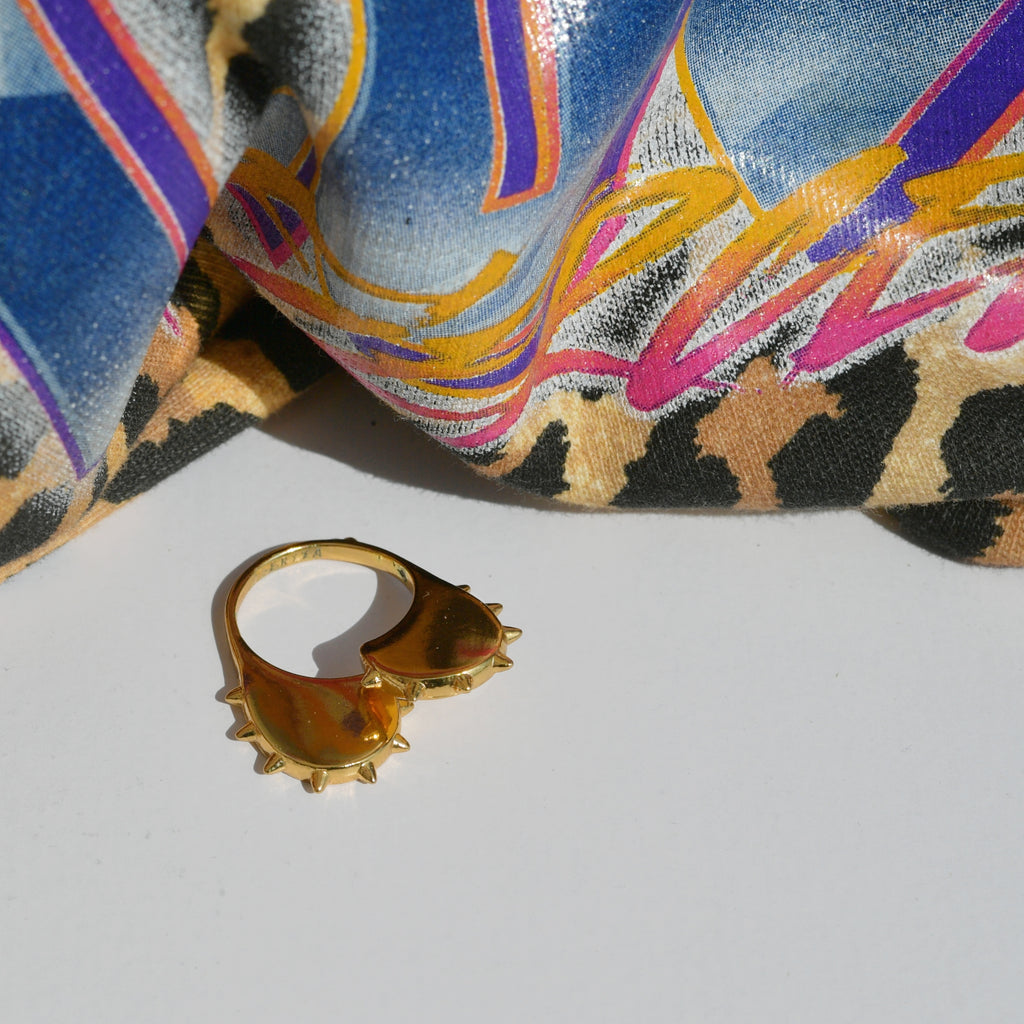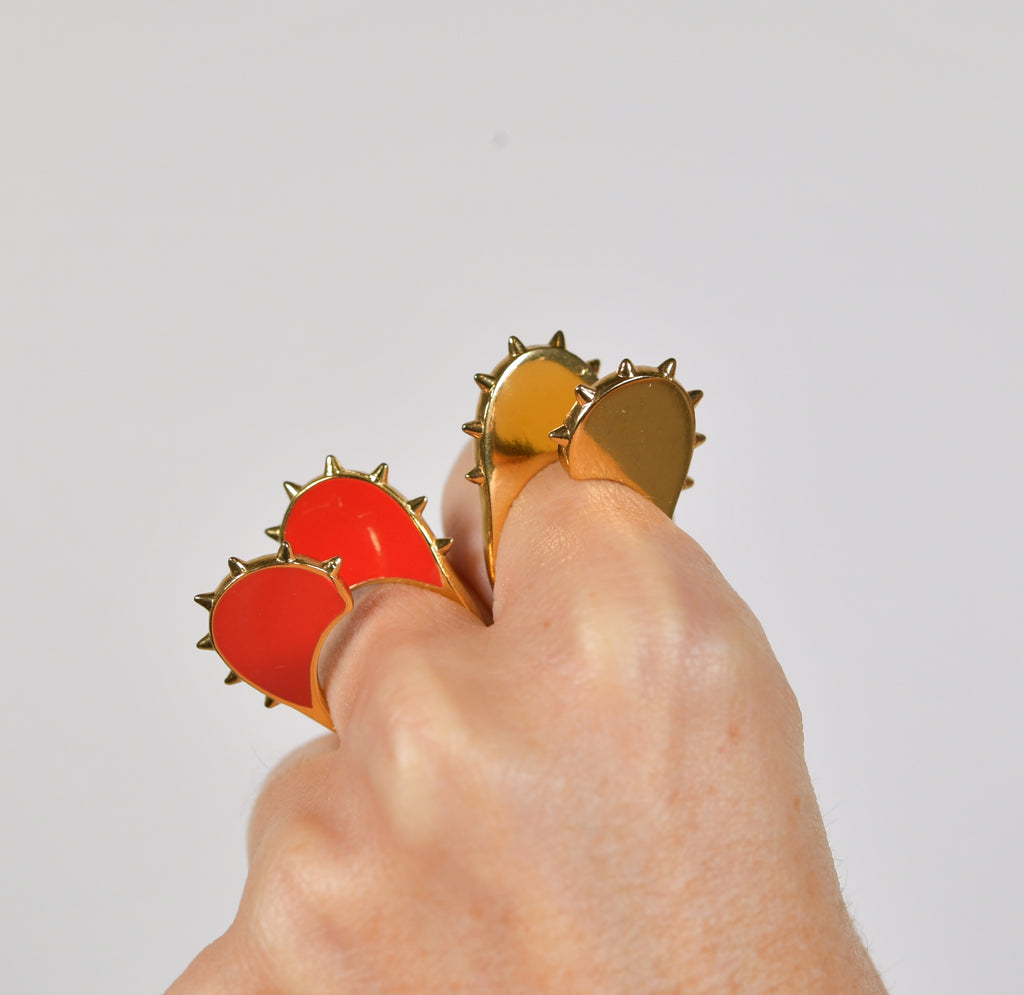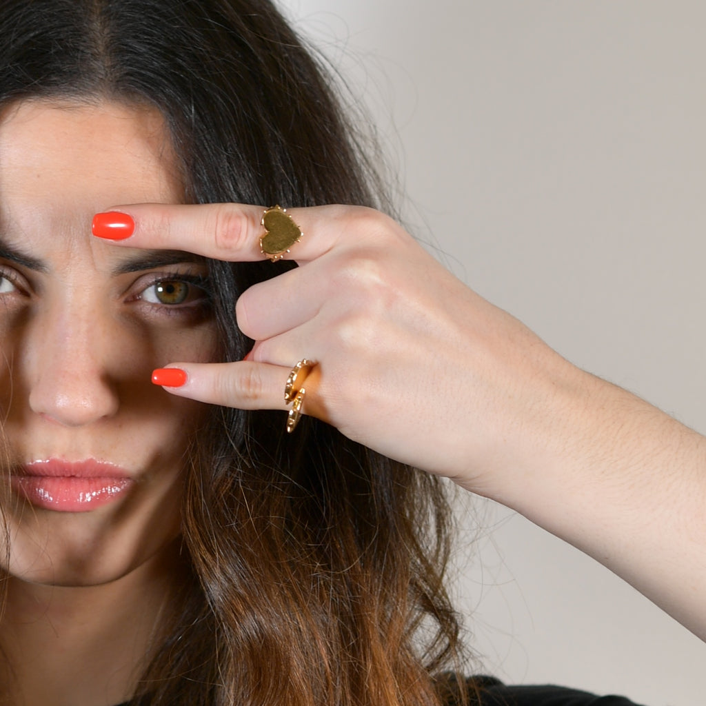 Une bague coeur dorée, comme une armure, qui prend de la hauteur et montre ses "piques". Des mini spikes délicats, un design ultra original, la combinaison idéale pour OSER avec délicatesse notre côté un tantinet rebelle !