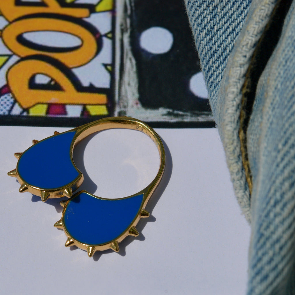 Une bague coeur dorée, comme une armure, qui prend de la hauteur et montre ses "piques". Des mini spikes délicats, un design ultra original, un bleu klein lumineux, une bague ouverte idéale pour pimenter tous vos looks denim !