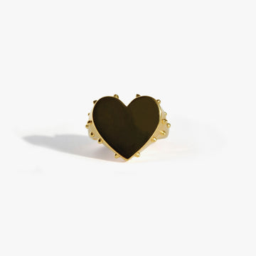Bague coeur dorée & émail noir volume XS