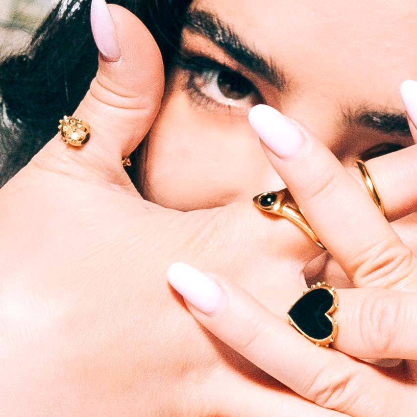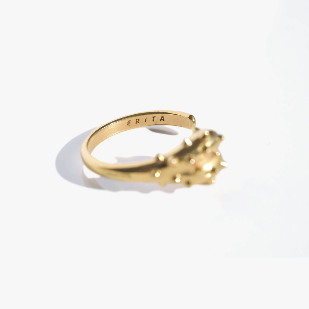 Faites à la main, avec des matériaux naturels, pour préserver leur authenticité et leurs imperfections, chaque bague en laiton doré ERITA est une bague originale et unique.