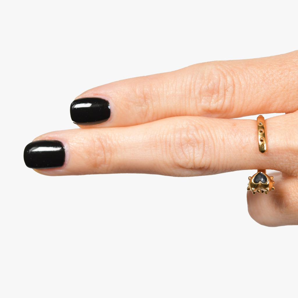 Bague coeur dorée & émail noir volume L