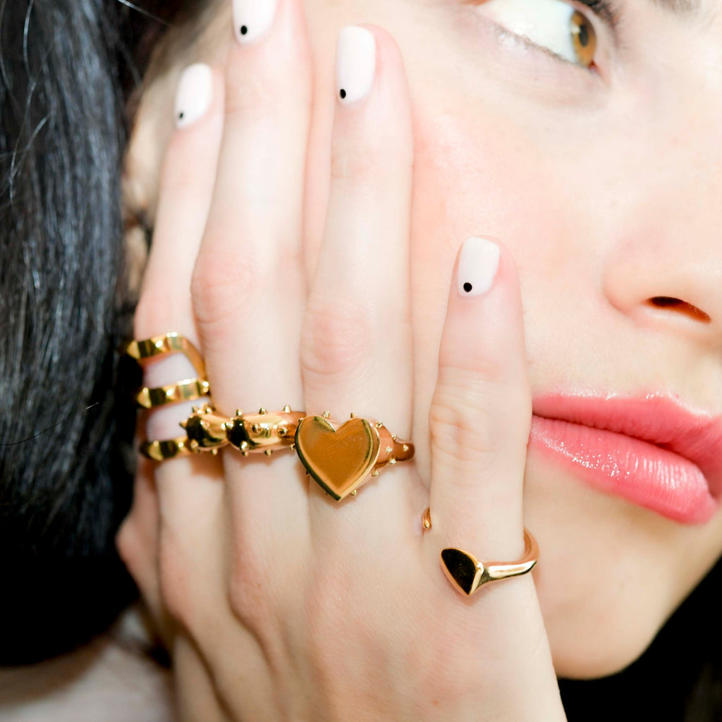 Faites à la main, avec des matériaux naturels, pour préserver leur authenticité et leurs imperfections, chaque bague en laiton doré ERITA est une bague originale et unique.