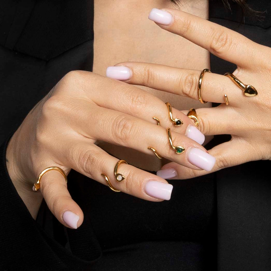 Une bague serpent toi & moi dorée + une pierre nacre = le mix idéal, la pointe de douceur aux lignes affutées ! Une version XS graphique de la classique bague serpent...cette bague toi & moi dorée ultra contemporaine est devenue un indispensable ERITA, un IT ICONIC de la marque !!